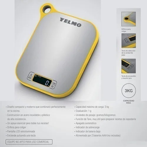 Ya sea que necesites calcular las porciones de los alimentos que desees consumir, o pesar los ingredientes para preparar la receta perfecta, esta balanza Yelmo BL-7001 te resultará sumamente útil y facilitará todos tus que haceres de la cocina.